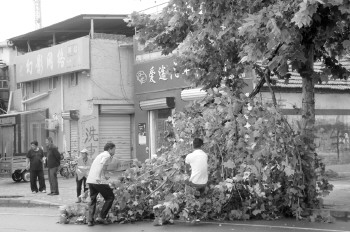 图为:菏泽城区中山路一棵大树树枝被刮断。 本报记者 邓兴宇 摄