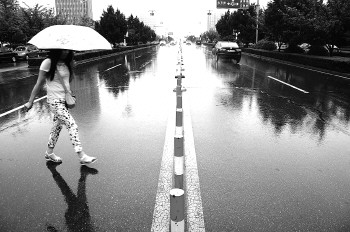 23日下午,市民在烟台路上冒雨前行,降雨并没有给市民的出行造成太大不便。 本报记者 刘涛 摄