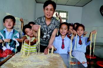 夏至日当天,沂源县南鲁山镇菜园小学开展了做“夏至面”活动。