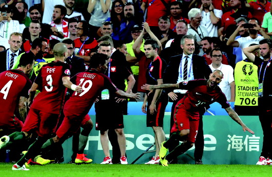 葡萄牙队庆祝最后的胜利。 东方IC供图