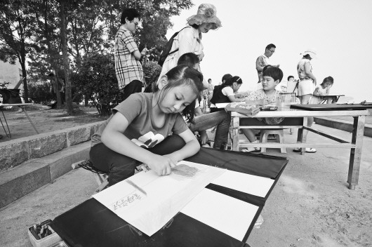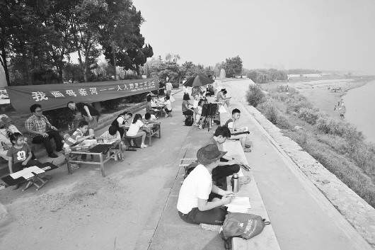 7月2日上午,21名小记者在济南百里黄河风景区画起了母亲河。 本报记者 张中 摄