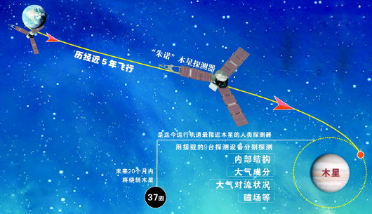 中国科学院国家天文台的行星科学专家郑永春表示,木星比太阳系中其他行星都大得多,拥有60多颗卫星,“这是一个小太阳系”。科学界以前对木星的内部结构,还有其云层、磁场和辐射等特性了解很少,因此,这次任务有很重要的科学意义。