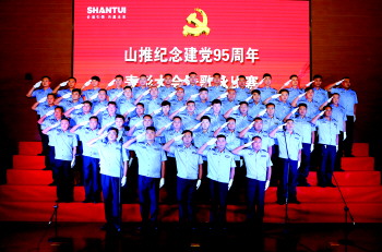 当日山推举行纪念建党95周年职工歌咏大赛,千余名山推职工汇聚一堂,纵情放歌,歌唱祖国,抒发时代豪情;歌唱山推,展现爱岗敬业的精神风貌。12个职工代表队分别演唱了《没有共产党就没有新中国》、《强军战歌》、《中国,中国,鲜红的太阳永不落》、《我爱我的祖国》一首首脍炙人口的歌曲,抒发了企业员工对中国共产党光荣历史和丰功伟绩的讴歌和赞美,唱响中华民族伟大复兴的乐章。