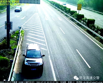 本报菏泽7月5日讯(记者 邓兴宇) 2日上午,一辆黑色SUV在G1511高速公路通过日兰立交桥时,突然右打方向驶入应急车道倒车,随后司机还改变了原车车牌。该司机自以为这样做能逃避交警处罚,殊不知这一切都被记录在了交警高速公路监控系统里,该司机目前面临罚款5400元、记30分、15日拘留的处罚。