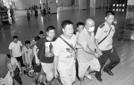 7月5日晚,嘉祥警方将6名嫌疑人押解回当地看守所。 本报记者 岳茵茵 摄