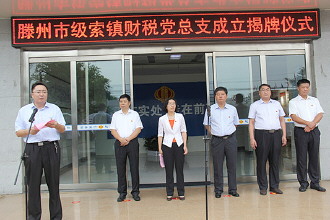 7月1日,值庆祝“七一”建党95周年之际,级索镇在滕州市地税局级索中心税务所隆重举行级索财税党总支和级索办税厅党支部成立揭牌仪式,滕州市领导孔繁华、刘春雨、杜向辉、王怀真应邀出席并揭牌。图为级索镇党委书记邢军主持并作重要讲话。 通讯员 郑大勇 拍摄