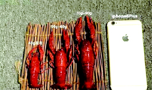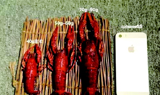 小龙虾个头越大卖得越贵。下面就拿土豪必备物比较一下,带大家看看不同体重的小龙虾大概都是多大。(图二、三)