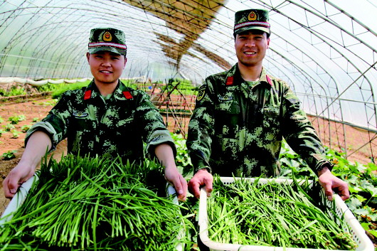 为进一步提高官兵生活水平,增强后勤保障能力,石岛边检站因地制宜开展农副业生产,建设了占地面积约10亩的蔬菜生产基地,并建成1000平方米的蔬菜大棚,种植了芹菜、土豆、茴香、黄瓜、西红柿等各类蔬菜,丰富了官兵“菜篮子”,实现了蔬菜供应自给自足。