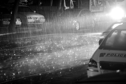 19日21点20分,济南东关大街开始降雨,雨量逐渐增大。本报记者 戴伟 摄