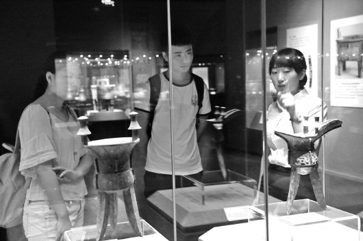 观众在参观妇好墓出土文物。