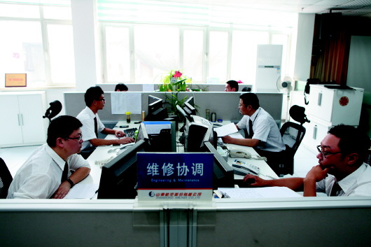殷泽中是山航工程技术公司维修控制中心(MCC)一名生产调度经理。他所在的生产调度管理岗位负责处理飞机飞出基地后发生的故障。山航在济南、青岛、烟台、厦门、重庆等地都设有基地,各基地机务人员负责本基地所属飞机的保养和维修。飞机只要飞出基地发生故障,就归MCC管理,由总调度和技术支援工程师联合指挥远程维修。