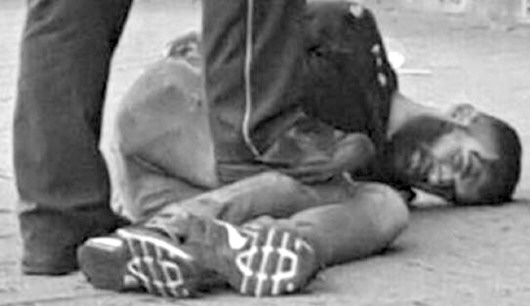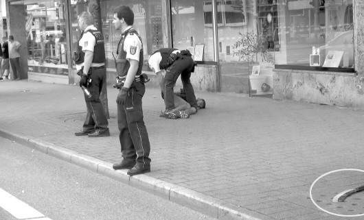 24日,在德国西南部城市罗伊特林根市,警察逮捕砍人事件嫌犯,地上为作案工具砍刀。(视频截图)。 新华/美联