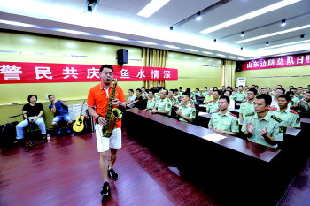 26日,日照市文联联合日照港文联,前往日照边防检查站开展百花园梦文艺志愿者进边检慰问演出活动,与官兵们切磋书画技艺,共同联欢。 本报记者 刘涛 摄影报道