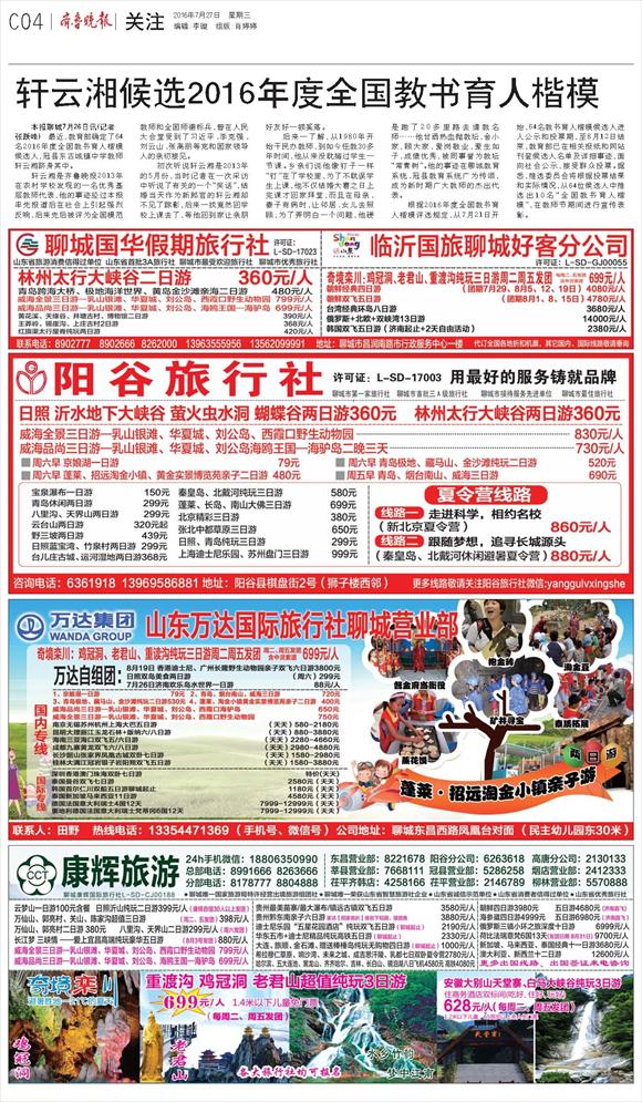 第l02版:今日聊城·旅游