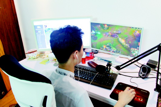 除了阳盛阴衰的性别比例,游戏主播与以唱歌、跳舞、聊天为主的泛娱乐化主播们还存在着诸多差别。与娱乐主播主要靠打赏分成从平台获得收益不同,游戏主播们获得的打赏礼物相对较少,他们的主要报酬是平台基于其带动的巨大观看流量所给予的。“游戏主播一般是流量主播,他们一天直播4个小时左右,而观看的人数则有二三十万,高峰期甚至能达到上百万,我们公司签约的游戏主播一天在25万以上观看量的就有七八个。”喻谦表示,巨大的用户流量使得平台商业价值显著提升,主播身价自然水涨船高,“就相当于汪涵、何炅这样的主持人对于一个电视台的价值。”