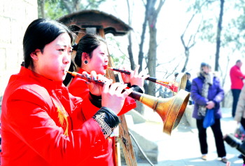 峄山庙会上的唢呐表演。