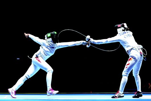 重剑个人赛冲金失利,孙一文(右)将在团体赛中与队友一同发力。 新华社发