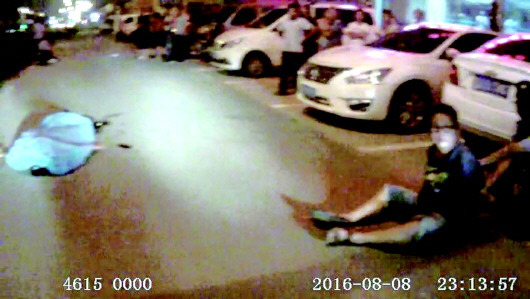 七夕前夜,8日晚10点40分左右,天桥区济齐路一家医院门口发生杀人事件,一名青年男子持刀捅向另一男子胸口数刀致死。医护人员欲施救,行凶男子挥刀阻止,称“我就是要弄死他”。据警方通报,该男子杀人原因系感情纠纷,目前已被刑拘。图为警方将行凶男子控制。 视频截图
