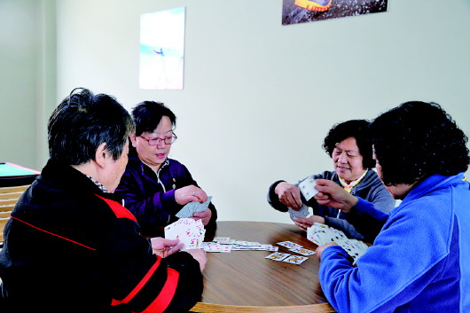 ▲邻居们凑一起打会儿牌,图个乐。