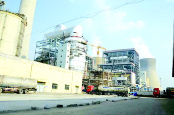 矗立在8号机组的银白色建筑物是超低排放的核心装置。本报记者 庄子帆 摄