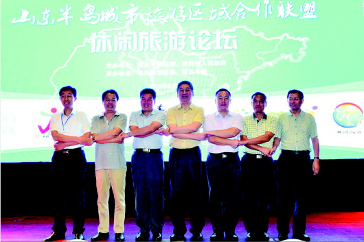 在滨州正式加入联盟的仪式上,青岛、烟台、潍坊、威海、日照、东营、滨州这7个地市的旅游主管部门相关负责人把手紧紧握在一起,山东半岛城市旅游区域合作联盟将更加紧密地合作。