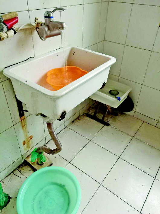 刘先生介绍,小区内的十三栋楼都有不同程度的停水,尤其12号楼和13号楼最为严重。在每栋楼里,一楼和二楼居民家里的水流相对大一些,三楼以上的居民家里基本处于断水的状态。“每天都会有三楼以上楼层的居民到一楼和二楼,请求帮忙接点水。”刘先生说。