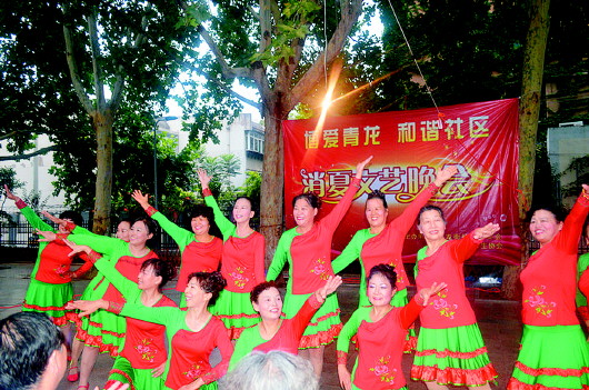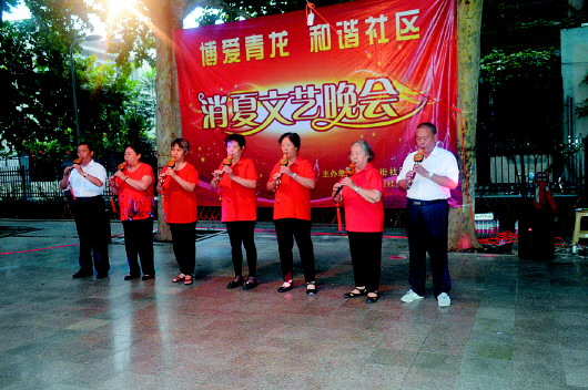 8月5日晚,青龙街 “博爱青龙 和谐社区”第三届消夏晚会在护城河小广场圆满落幕。演出在歌曲《保卫黄河》、《游击队之歌》中拉开了序幕,紧接着各表演队交替上场,集体舞、独唱、京剧、群口快板等节目高潮迭起,掌声不断,居民们搬着小马扎,边鼓掌边点评,现场反响热烈。青龙街社区文化团队建设逐步完善,合唱队、舞蹈队、曲艺队活跃在社区内,使不同爱好的居民在家门口就能加入自己的团队。同时,社区充分发挥丰富的文化资源优势,为社区中不断涌现的原创节目搭建展示的平台,满足广大社区居民多层次、多方面文化需求的同时,提升社区居民文明素质,以此不断繁荣基层文化,推进社区和谐创建活动不断向纵深发展。