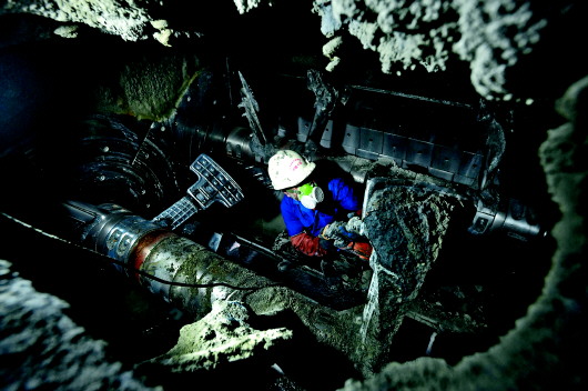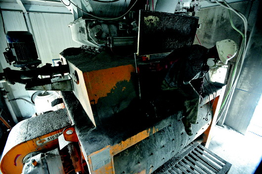 刘西才所在的拌和站主要为济青高铁、济南新东站等工程提供高铁高性能混凝土。搅拌机每次工作完毕后,罐壁上都会有大量凝固的顽固残留,需要人工清理。这时,刘西才都要从不足40厘米高的检修口爬进爬出,用风镐一点点清理。人在罐内活动空间很小,或躺或坐或蹲,5分钟就会汗流浃背。因为周围都是铁家伙,他的胳膊和腿常常被搅拌叶片划伤,有次一块脱落的混凝土块碰到叶片改变方向,将他的大脚趾指甲砸掉了。罐子里除了咚咚的风镐敲击声,他什么都听不到,为了安全工友在外瞭望,看守主机电源。