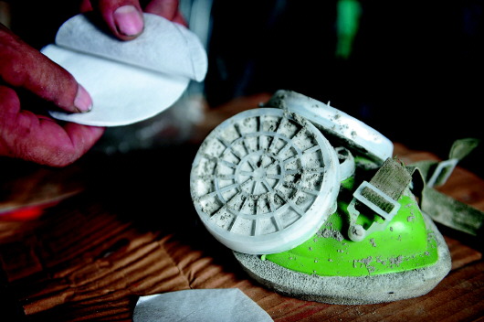 ▲罐内粉尘非常大,需要频繁地更换口罩滤纸。