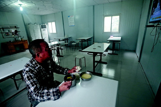 ▲工作24小时没正点,食堂经常见他独自吃饭。