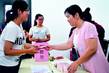 接受资助的学子领取爱心助学款。