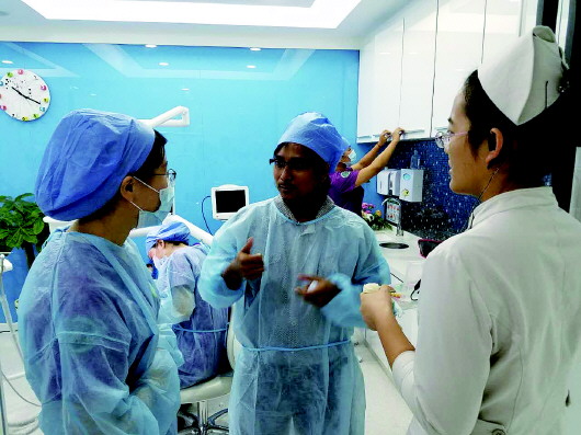 ▲来自马来西亚的口腔修复专家Zaihan Ariffin博士为美辰口腔医院的医生做技术指导。