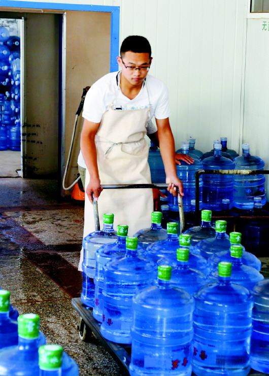 高考后,徐志瑞每天要搬运近千桶纯净水。