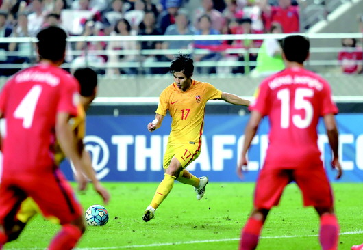 第21分钟,韩国队获得前场任意球机会,孙兴慜快速斜传门前,池东沅甩头攻门,皮球碰郑智后撞入中国队球门。第63分钟,韩国队又是由孙兴慜在前场策动进攻,池东沅左路单挑张琳芃形成传中,任航在后点未注意到身后前冲的李青龙,李青龙头球破门。第66分钟,孙兴慜左路强突张琳芃后传中,池东沅前点横拨过渡,具滋哲在后点与任航抢位中形成攻门,皮球击中立柱内侧后撞入网内。韩国队的三粒进球,均与孙兴慜有关,对于中国球迷来说,孙兴慜也许不值得尊敬,但其实力确实让人佩服。