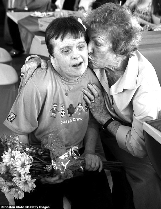 在“退休派对”上,戴维的母亲安娜丽斯(右)亲吻戴维。