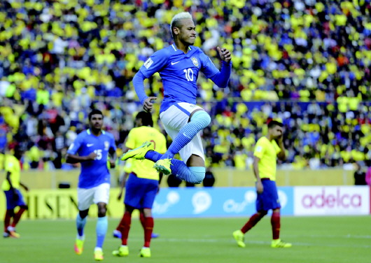 整个上半场,由于在高原作战,巴西球员们的状态并不好,奔跑不积极,只能依靠远射威胁厄瓜多尔的球门;下半场,巴西球员们的精神面貌突然有了改观,但比赛僵局直到第7分钟才被打破,赫苏斯禁区内制造点球,内马尔站在12码前,冷静地将皮球罚进网窝,帮助巴西客场1:0领先。内马尔主罚点球命中,再次显示出大心脏,犹如他在奥运会上做的那样,战德国的决赛中,内少任意球破门一度帮助巴西1:0领先,但之后被追平,比赛被迫进入点球大战环节,内马尔第五个出场罚中点球,帮助桑巴军团赢得奥运冠军,这也是巴西在奥运会史上第一枚足球项目的金牌。