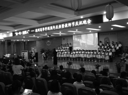 本报9月11日讯(记者 王忠才 通讯员 赵敏 王慧娟) 9月8日晚上,莲华学园在大礼堂举办一周年校庆暨教师节庆祝晚会,用VCR影片回顾了这一年的足迹,分享大家庭的小幸福,师生演绎精彩节目,《说说莲华人》自编相声将晚会引向高潮,晚会上对2015-2016年十大莲华人物进行表彰。