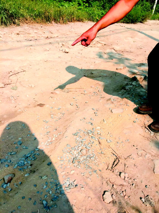 路面坑洼不平。 邢敏 摄
