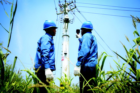 9月9日,国家电网山东邹平县供电公司台子供电所“彩虹共产党员服务队”队员,正在对10千伏海华线进行秋收保电特殊巡视,确保“三秋”生产安全供电万无一失。