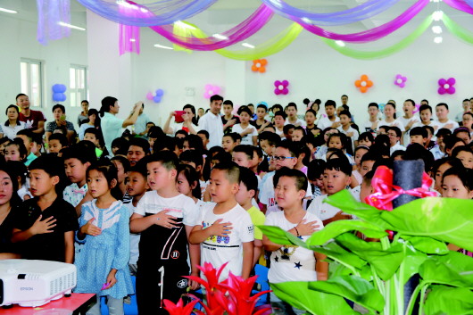 凤凰路小学师生和家长举办第一个开学典礼。