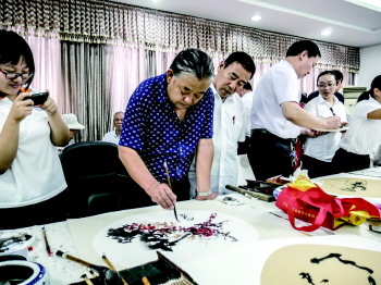 颂济宁书画展暨书画集出版发行仪式10日在济宁育才中学开幕,活动由济宁高新区美术家协会主办,300余人参展,参展作品100余幅。围绕“庆中秋·颂大美济宁”主题,百余名书画名家还现场创作作品100多幅,作品深受前来参观市民及师生的欢迎。
