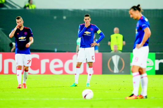 辛辛苦苦大半年,一夜回到解放前。做客挑战费耶诺德,曼联0:1爆冷输球,继曼市德比失利之后再遭打击。另外一支豪门球队国米同样遇冷,他们在主场0:2不敌以色列贝尔谢巴工人队,时隔547天重回欧战,却遭遇当头一棒。秋意渐浓,豪门普遍感受到了浓浓的凉意。