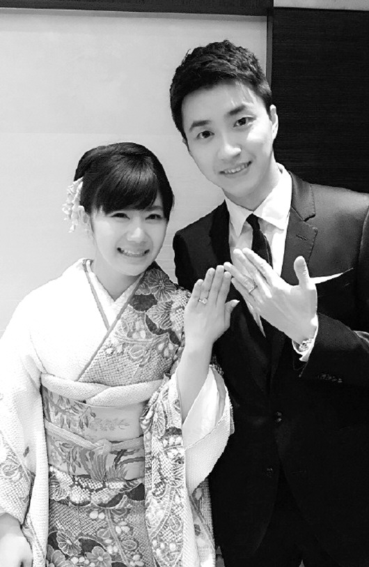 福原爱夫妻展示婚戒。