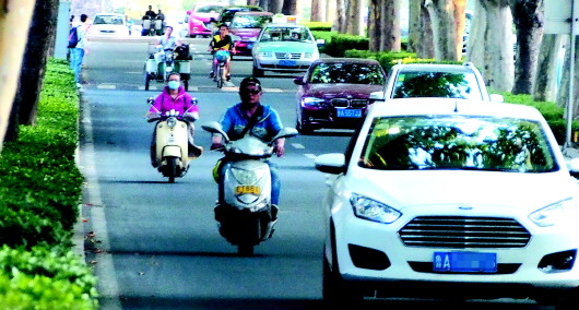近日,济南市区连续发生牵涉电动车的死亡事故,越来越多的电动车驶入快车道,是个巨大隐患。20日、21日,记者选取历山路南段东侧快车道,进行拍照统计。结果在早晚高峰时间,发现有近三分之一的电动车和三轮车驶入快车道跟汽车拼跑。20日下午的一分钟内,最多有22辆电动车在快车道上狂奔,尤其是载货的三轮车,几乎百分百走快车道,简直是在玩命。 本报记者 周青先 摄