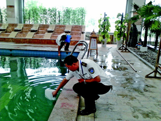 卫生部门督察水质。