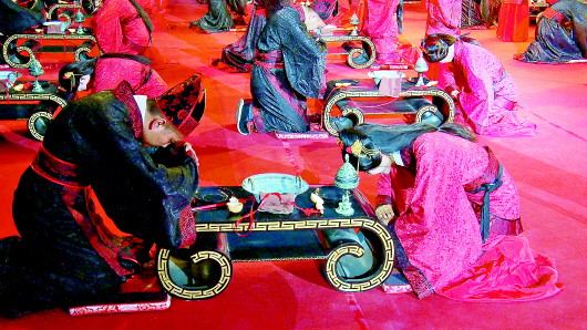 25日晚,在解放阁附近,一场盛大的古典汉式婚礼举行,百名情侣盛装出席。他们按照中国古老婚礼规程举行拜祭天地、父母以及夫妻间互敬互爱仪式,宣誓携手到老,体验了中国传统文化的魅力。