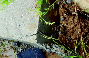 地基上有的地方混凝土已经开始脱落。