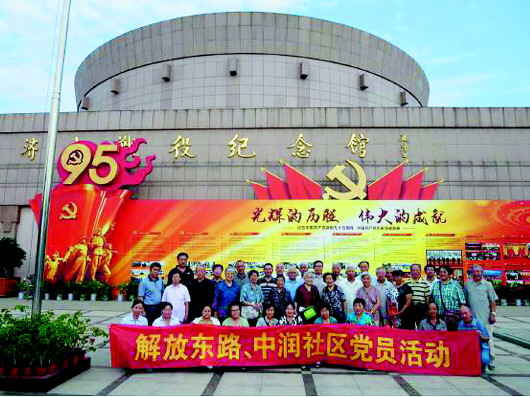 本报讯(记者 张九龙 通讯员 王小芸) 为纪念中国共产党成立95周年,深入开展“学党章党规,学系列讲话,做合格党员”学习教育活动,让党员干部能“牢记国耻,不忘国难”,9月23日下午,中润世纪城社区居委会联合解放东路社区居委会,组织辖区内的党员干部参观了济南战役纪念馆。