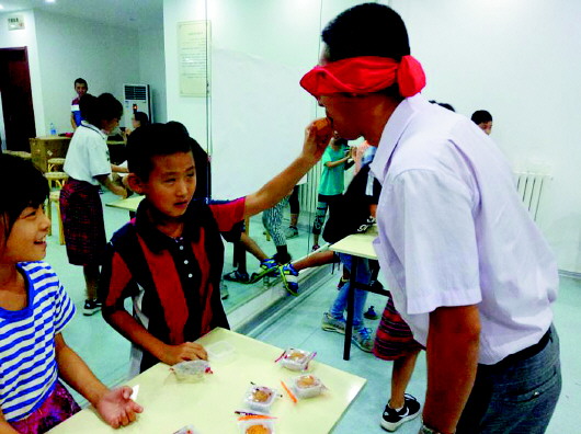 本次活动从社工讲述中秋节历史由来、文化习俗中开始。社工带领大家进行的两个热身游戏,分别为“齐心协力吃月饼”和“心有灵犀一点通”。在“齐心协力吃月饼”的环节中,各位家长在自己孩子指导下,蒙着眼睛,在重重障碍下吃到了孩子们喂的香甜月饼。在“心有灵犀一点通”环节中,家长与孩子分为两组,协作猜测词语,看哪一队的正确率更高。