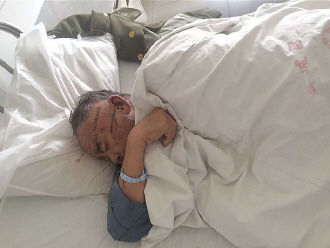 受伤接受治疗的许克中老人。 本报见习记者 秦政 摄
